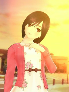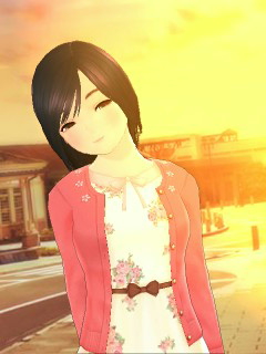 マナカさん「ふふっ♪ 夕日が眩しくて綺麗‥‥‥」